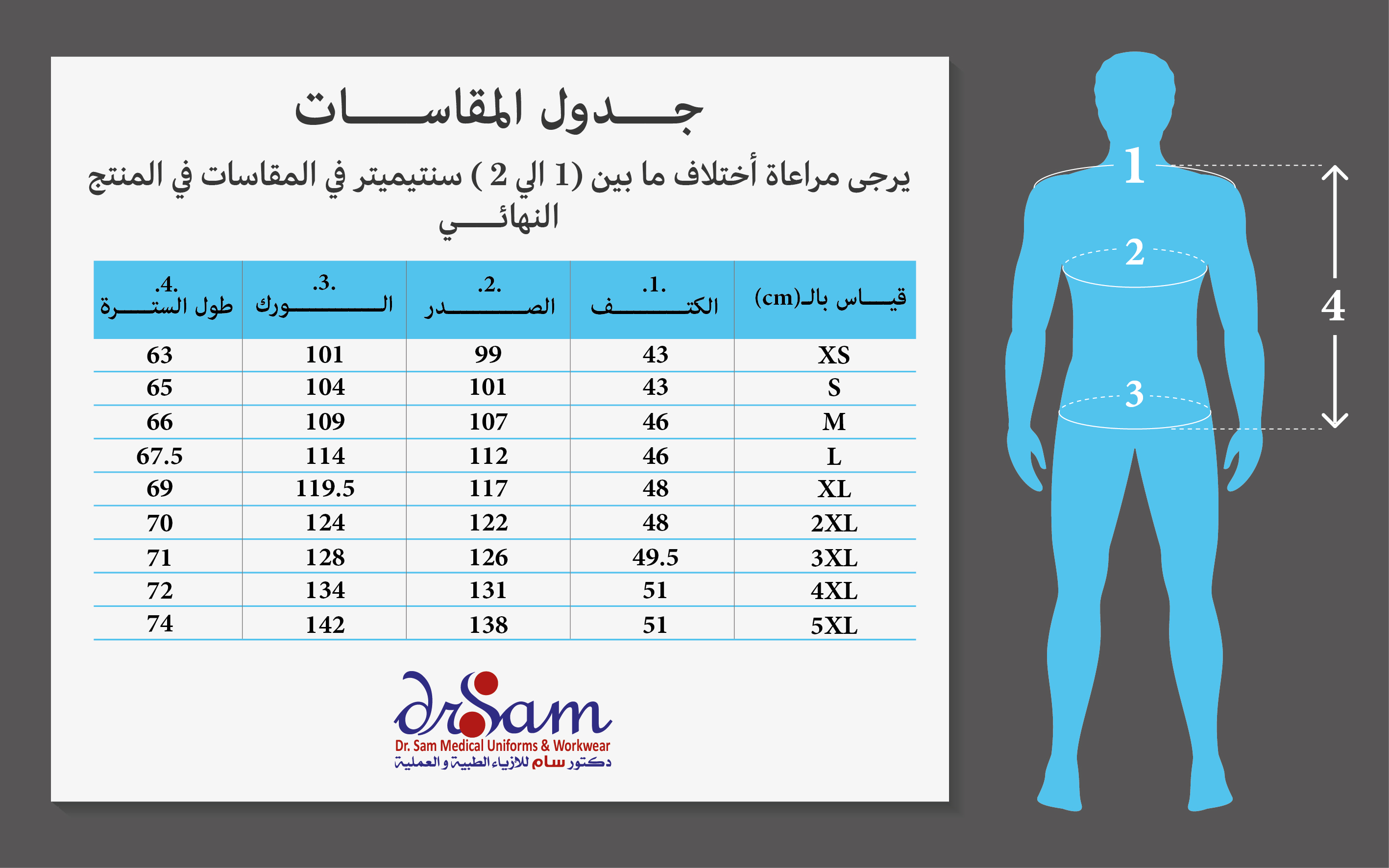 جدول مقاسات سترة شتويه